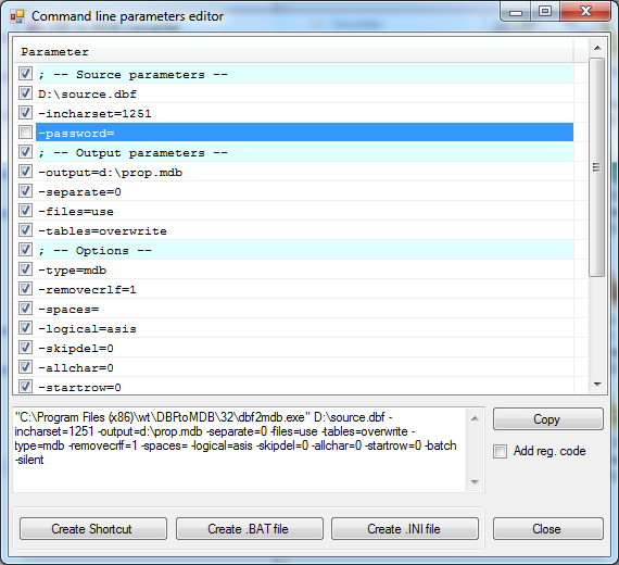 Command line parameters allows you to launch DBF to MDB Converter from your own applications, command files, and so on.