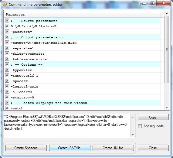 Command line parameters allows you to launch MDB to XLS Converter from your own applications, command files, and so on.