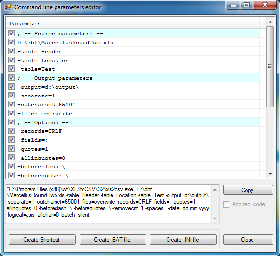 Command line parameters allows you to launch XLS to CSV Converter from your own applications, command files, and so on.