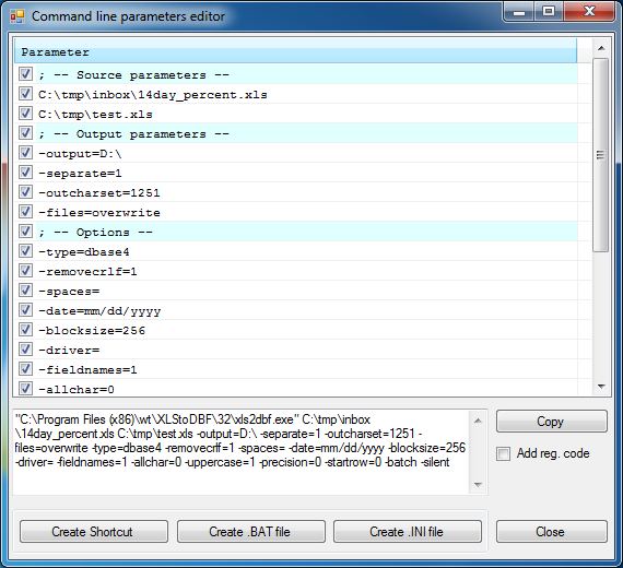 xls2dbf.exe c:\tmp\source.xlsx @c:\tmp\params.ini