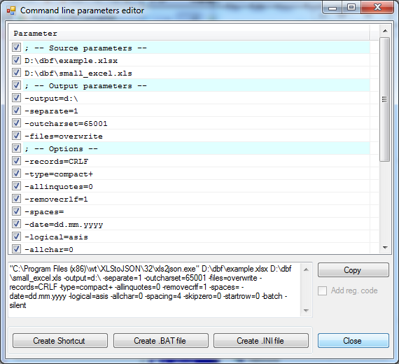 Command line parameters allows you to launch XLS to JSON Converter from your own applications, command files, and so on.